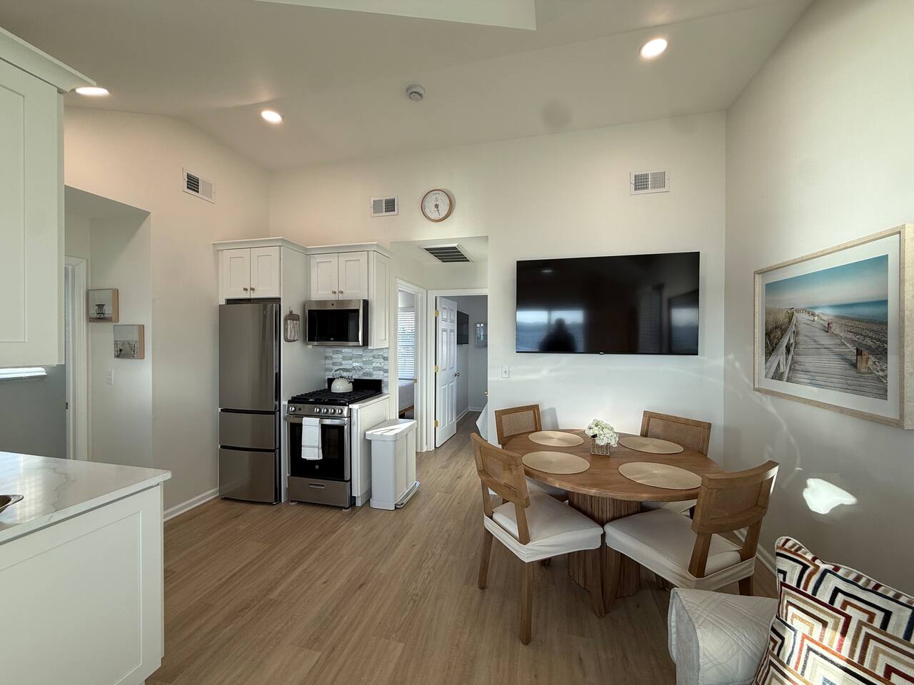 Guests will have full private access to the entire waterfront home throughout their stay, including: 🏠 The entire home — all rooms, amenities, and living spaces are exclusively yours. 🍽️ Brand-new kitchen and beautifully updated bathrooms for a modern, comfortable stay. 🌡️ Central A/C & heating for year-round comfort. 🌊 Private bayfront deck with outdoor dining, BBQ grill, and string lighting for the perfect day-to-night atmosphere. 🏖️ Private sandy beach area steps from your door—complete with sun loungers and Adirondack chairs overlooking the Barnegat Bay. 🛋️ Cozy, shaded hangout area beneath the house featuring an outdoor sectional couch and a mounted outdoor TV—a relaxing oasis on warm days or breezy nights. 🚲 Bicycles for guest use, perfect for riding to the beach, boardwalk, or exploring town. ⚡ High-speed Wi-Fi for streaming, remote work, or staying connected. 📺 Roku Smart TVs inside the home (log in with your own streaming accounts). 🎲 Board games, cards, and books for downtime fun. ☕ Fully equipped kitchen with cookware, dishes, utensils, wine glasses, Keurig, K-cups, tea, sugar & creamer. 🛏️ Premium linens, bath towels, and beach towels provided for every guest. 🏖️ Tommy Bahama beach chairs, beach umbrella, beach cart and sand toys for carefree beach days. 🚗 Off-street parking for 2 vehicles for added convenience. 🧴 Essential toiletries provided, including soaps, shampoo, conditioner, paper goods, hair dryer, and iron/ironing board. Everything you need for a relaxing, comfortable, and unforgettable bayfront stay awaits you at your private Barnegat Bay retreat! 🌊✨