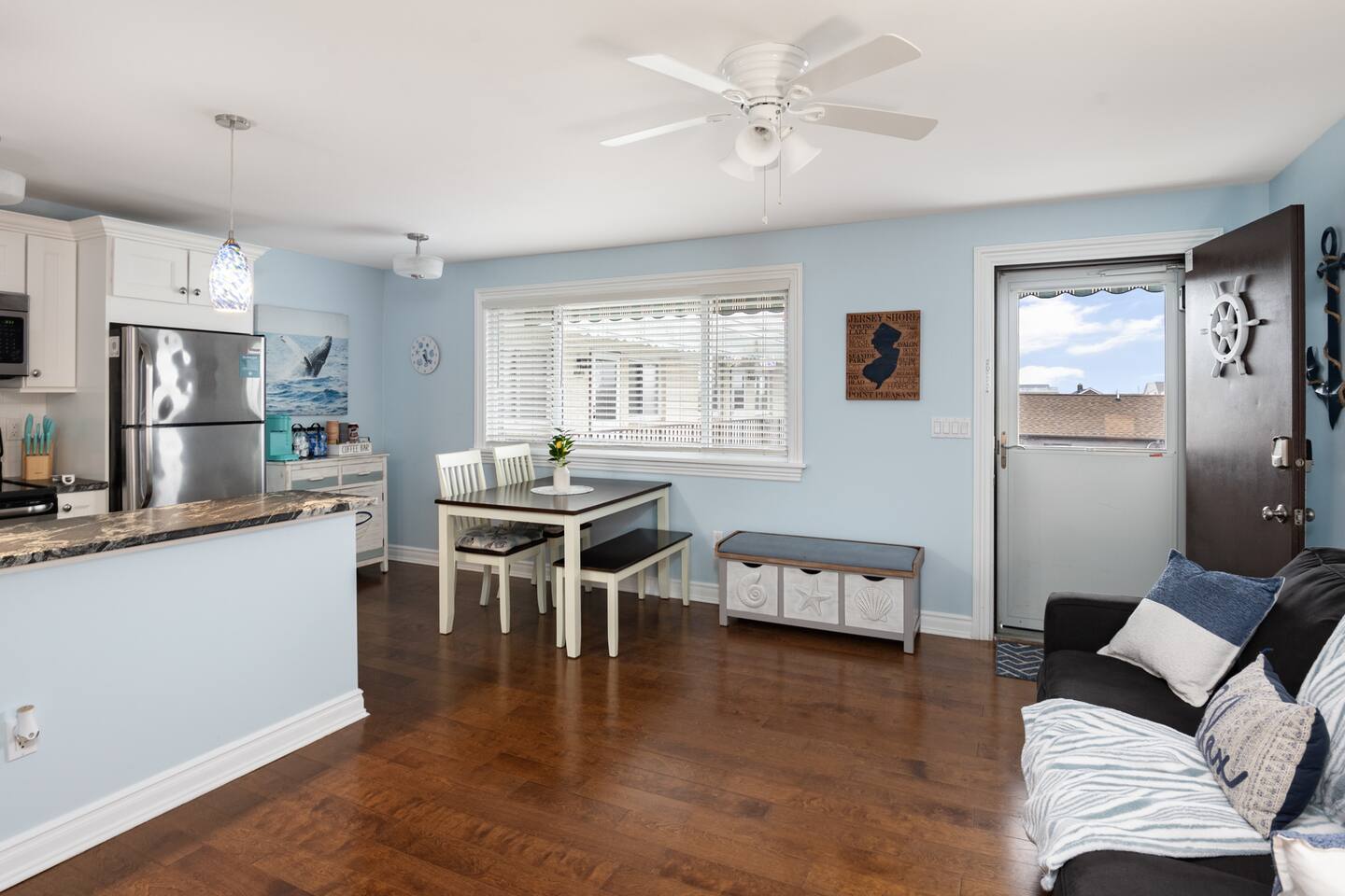 Welcome to Immaculate Airy Retreat, your perfect getaway in Seaside Heights! Just 300 feet from the beach and boardwalk, this charming 1-bedroom, 1-bathroom condo offers everything you need for a memorable beach vacation. Nestled on the third level, the condo features a spacious open floor plan with an abundance of natural light, creating a warm and inviting atmosphere throughout the day. Comfortably sleeping up to 4 guests, it’s ideal for a romantic escape or a cozy family retreat.