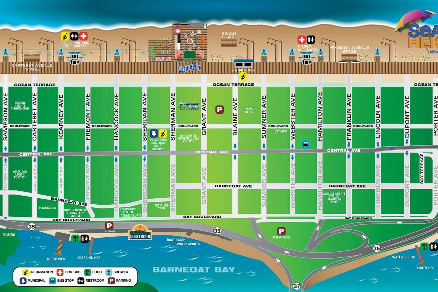 Everything you need is within walking distance! Make a right out of the driveway and walk 8 minutes to Seaside Heights Beach/Boardwalk and Atlantic Ocean. Make a left out of the driveway and walk 6 minutes, to Sunset Bay Beach, where you can watch the sunset over Barnegat Bay; it's truly magnificent! Seaside Heights' Tennis Courts located on the corner of Bay Blvd and Sheridan Ave. Just a 7 minute walk away! Seaside Heights' Fitness Park located on the corner of Bay Blvd and Kearney Ave. Just a 5 minute walk away!